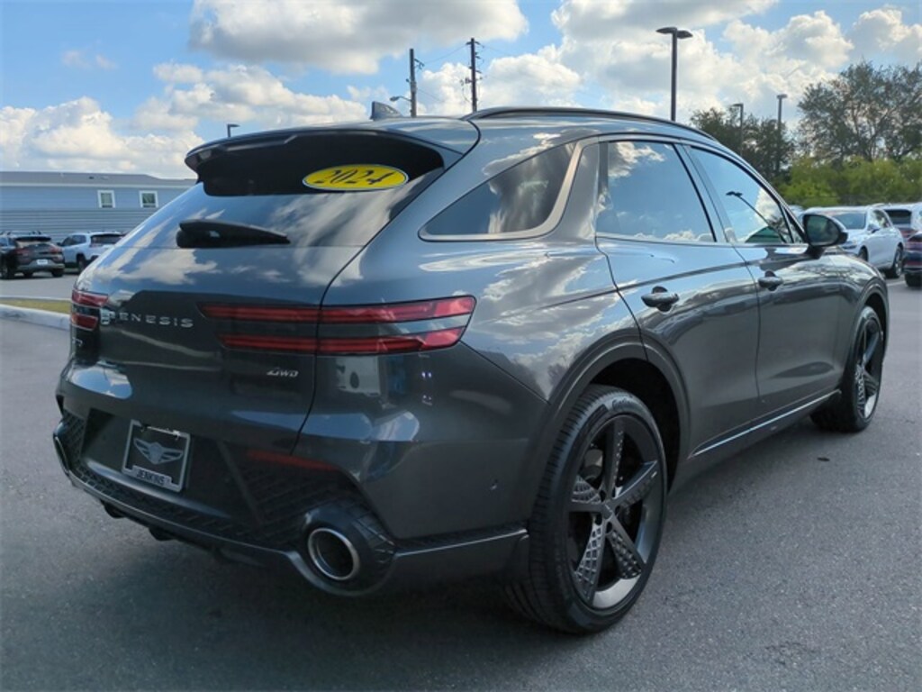 This vehicle comes equipped with Sport Appearance, Sport Prestige Package (12.3" 3D Digital Instrument Cluster, 2nd Row 110V AC Power Outlet, 3-Zone Climate Control, 4-Way Power Lumbar Front Passenger Seat, Adjustable Interior Ambient Lighting, Advanced Rear Occupant Alert, Alloy Pedals, Aluminum Trim w/Haptic Carbon Pattern, Blind-Spot View Monitor, Ergo Motion Seat, Forward Attention Warning, Forward/Reverse Parking Distance Warning, Genesis Digital Key, Heated Steering Wheel, Integrated Memory System (IMS), Leather Seating Surfaces w/Mesh Insert, Leatherette Wrapped Upper Instrument Panel, Lexicon Premium Audio, Manual Rear Door Shades, Passenger Walk-In Device, Power Driver Seat Bolster & Cushion Extension, Power Folding ECM Mirrors w/Genesis Logo Lamp, Power Telescoping Steering Wheel, Power Tilt & Slide Panoramic Sunroof, Remote Smart Parking Assist, Reverse Parking Collision-Avoidance Assist, Surround View Monitor, Ventilated Front Seats, and Wheels: 21" Dark Sputtering Sport Alloy), Genesis Certified, 4-Wheel Disc Brakes, 4.181 Axle Ratio, 9 Speakers, ABS brakes, Air Conditioning, Alloy wheels, Aluminum Trim w/Spin Brushed Pattern, AM/FM radio: SiriusXM, Android Auto & Apple CarPlay, Anti-whiplash front head restraints, Auto High-beam Headlights, Auto-dimming Rear-View mirror, Automatic temperature control, Brake assist, Bumpers: body-color, Cargo Cover, Cargo Net, Delay-off headlights, Driver door bin, Driver vanity mirror, Dual front impact airbags, Dual front side impact airbags, Electronic Stability Control, Emergency communication system: Genesis Connected Services, Exterior Parking Camera Rear, First Aid Kit, Four wheel independent suspension, Front & Rear Mudguards, Front anti-roll bar, Front Bucket Seats, Front Center Armrest w/Storage, Front dual zone A/C, Front reading lights, Fully automatic headlights, Garage door transmitter: HomeLink, Heated door mirrors, Heated Front Bucket Seats, Heated front seats, Illuminated entry, Knee airbag, Leather Seating Surfaces, Leatherette Seating Surfaces, Low tire pressure warning, Navigation System, Occupant sensing airbag, Outside temperature display, Overhead airbag, Overhead console, Panic alarm, Passenger door bin, Passenger vanity mirror, Power door mirrors, Power driver seat, Power Liftgate, Power passenger seat, Power steering, Power windows, Radio: 14.5" Navigation System w/AM/FM/HD Radio, Rain sensing wipers, Rear anti-roll bar, Rear Parking Sensors, Rear reading lights, Rear seat center armrest, Rear window defroster, Rear window wiper, Remote keyless entry, Reversible Cargo Tray, Security system, Speed control, Speed-sensing steering, Speed-Sensitive Wipers, Split folding rear seat, Spoiler, Steering wheel mounted audio controls, Tachometer, Telescoping steering wheel, Traction control, Trip computer, Turn signal indicator mirrors, Variably intermittent wipers, Wave Line Backlit Trim, Wheel Locks, and Wheels: 19" Dark Hyper Silver Alloy .