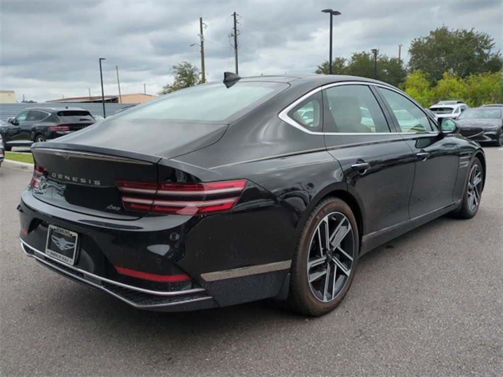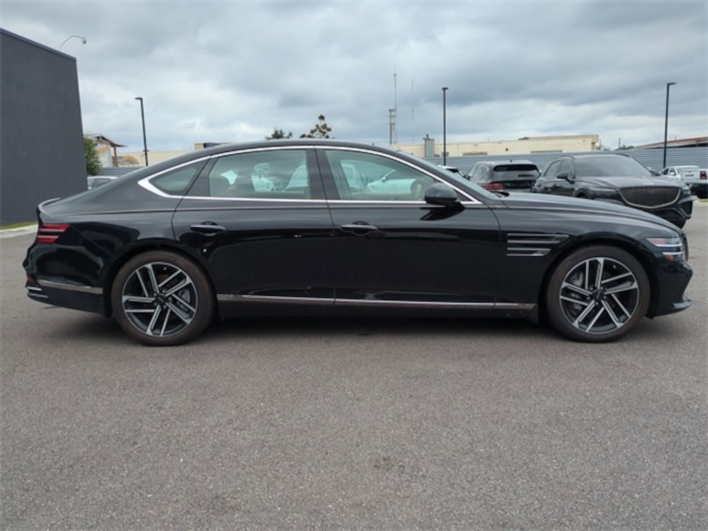 The price does not include tax, tag, license, an electronic filing fee of $449.00**, a private tag agency fee of $199.00**, and a predelivery service charge of $1199.00** **This charge represents costs and profit to the dealer for items such as inspecting, cleaning, and adjusting vehicles, as well as preparing documents related to the sale.* EPA-estimate metric: these are contingent on ideal conditions within a lab. Real-world situations such as carrying passengers or cargo, using climate control, driving style, and ambient temperatures can affect actual metrics. 20/29 City/Highway MPG Certified. Vik Black 2025 Genesis G80 2.5T AWD 8-Speed Automatic I4