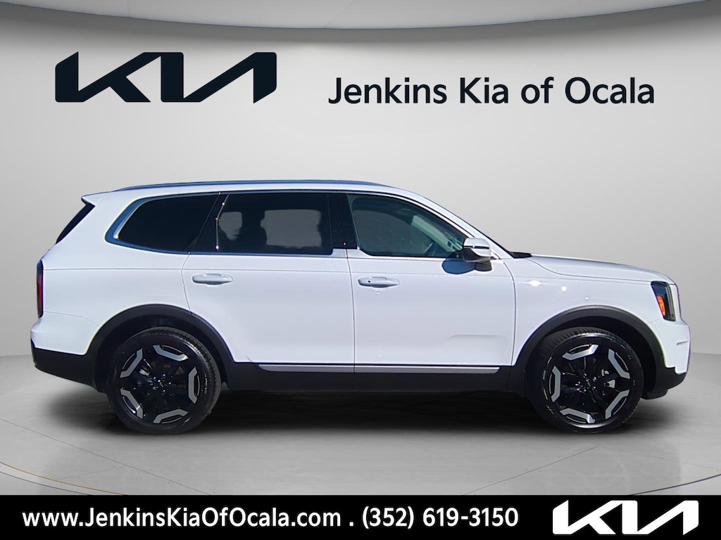 SHOWROOM NEW & PREMIUM LUXURY! 2025 Kia Telluride EXThis is the ultimate, no-compromise 3-row family SUV offering genuine country club luxury right here in Ocala. We just traded for this absolutely breathtaking 2025 Kia Telluride EX with a virtually non-existent 4,078 miles. For a highly sought-after vehicle barely one year old, this mileage is phenomenally lowessentially a brand-new vehicle! It sits in the perfect "sweet spot": you get the commanding styling, fresh tech, and executive-level comfort without absorbing the massive initial depreciation hit of driving a zero-mile 2026 model off the showroom floor.The "EX" StandardThe EX trim steps firmly out of basic family-hauler territory, becoming a genuine premium experience:Premium Leather Seating with Heating & Ventilation offering an upscale feel while providing instant cooling relief during intense Florida summer heatwaves.Power Sunroof letting in fresh sunshine and gulf breezes on your way to the coast.Smart Power Liftgate automatically opening when you stand behind it with your key fob, making it effortless to load sports gear or heavy grocery hauls.20-Inch Alloy Wheels completely transforming the stance, giving the SUV an aggressive, towering presence on SR 200.Connected CabinYour luxury SUV is a digitized command center. The 2025 Telluride EX features a massive 12.3-Inch Touchscreen Display with Navigation. This system comes equipped with Apple CarPlay and Android Auto. Project Waze routes directly onto the dash. Plus, it features family-focused tech like Driver Talk, projecting your voice through the rear speakers, and Quiet Mode, muting rear speakers when the kids fall asleep on the long drive back from Orlando.The "Telluride" AdvantageKia engineered this flagship SUV to deliver whisper-quiet highway cruising while maintaining robust muscle:3.8L V6 Engine delivering a massive 291 Horsepower and 262 lb-ft of torque. It provides effortless acceleration on I-75 and a 5,000-lb towing capacity for hauling your boat to Lake Weir.Highway Driving Assist acts as your digital co-pilot, combining adaptive cruise control and lane-centering to drastically reduce stress in heavy traffic.Massive 3-Row Seating hauling up to eight passengers in premium comfort, or fold the rear rows completely flat to unlock cavernous cargo space for massive Costco runs.Just Getting StartedAt just over 4k miles, this pristine Telluride hasn't even finished its break-in period! You get the head-turning design, highly refined luxury, and absolute peace of mind for thousands less than a brand-new SUV. Fully inspected by our certified technicians and ready to elevate your family's next adventure.