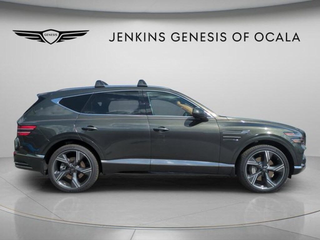 This vehicle comes equipped with Option Group 01, 18 Speakers, 3rd row seats: split-bench, 4-Wheel Disc Brakes, ABS brakes, Adaptive suspension, Air Conditioning, Alloy wheels, AM/FM radio: SiriusXM, Anti-whiplash front head restraints, Auto High-beam Headlights, Auto tilt-away steering wheel, Auto-dimming door mirrors, Auto-dimming Rear-View mirror, Automatic temperature control, Brake assist, Bumpers: body-color, Cargo Net, Compass, Delay-off headlights, Driver door bin, Driver vanity mirror, Dual front impact airbags, Dual front side impact airbags, Electronic Stability Control, Emergency communication system: Genesis Connected Services, Exterior Parking Camera Rear, First Aid Kit, Four wheel independent suspension, Fragrance Cartridge, Front and Rear Mudguards, Front anti-roll bar, Front Bucket Seats, Front Center Armrest, Front dual zone A/C, Front reading lights, Fully automatic headlights, Garage door transmitter: HomeLink, Genuine wood console insert, Genuine wood dashboard insert, Genuine wood door panel insert, Heads-Up Display, Heated and Ventilated Front Bucket Seats, Heated door mirrors, Heated front seats, Heated rear seats, Heated steering wheel, Illuminated entry, Knee airbag, Leather steering wheel, Low tire pressure warning, Memory seat, Nappa Leather Seating Surfaces, Navigation System, NFC Key Card, Occupant sensing airbag, Outside temperature display, Overhead airbag, Overhead console, Panic alarm, Passenger door bin, Passenger vanity mirror, Power door mirrors, Power driver seat, Power Liftgate, Power moonroof, Power passenger seat, Power steering, Power windows, Radio data system, Radio: AM/FM/HD Bose Premium Sound System, Rain sensing wipers, Rear air conditioning, Rear anti-roll bar, Rear reading lights, Rear seat center armrest, Rear side impact airbag, Rear window defroster, Rear window wiper, Reclining 3rd row seat, Remote keyless entry, Roof Rack Cross Bars, Security system, Speed control, Speed-sensing steering, Speed-Sensitive Wipers, Split folding rear seat, Spoiler, Steering wheel memory, Steering wheel mounted audio controls, Tachometer, Telescoping steering wheel, Tilt steering wheel, Traction control, Trip computer, Turn signal indicator mirrors, Variably intermittent wipers, Ventilated front seats, Ventilated rear seats, and Wheels: 22" x 9.5J Dark Gray Matte Alloy .