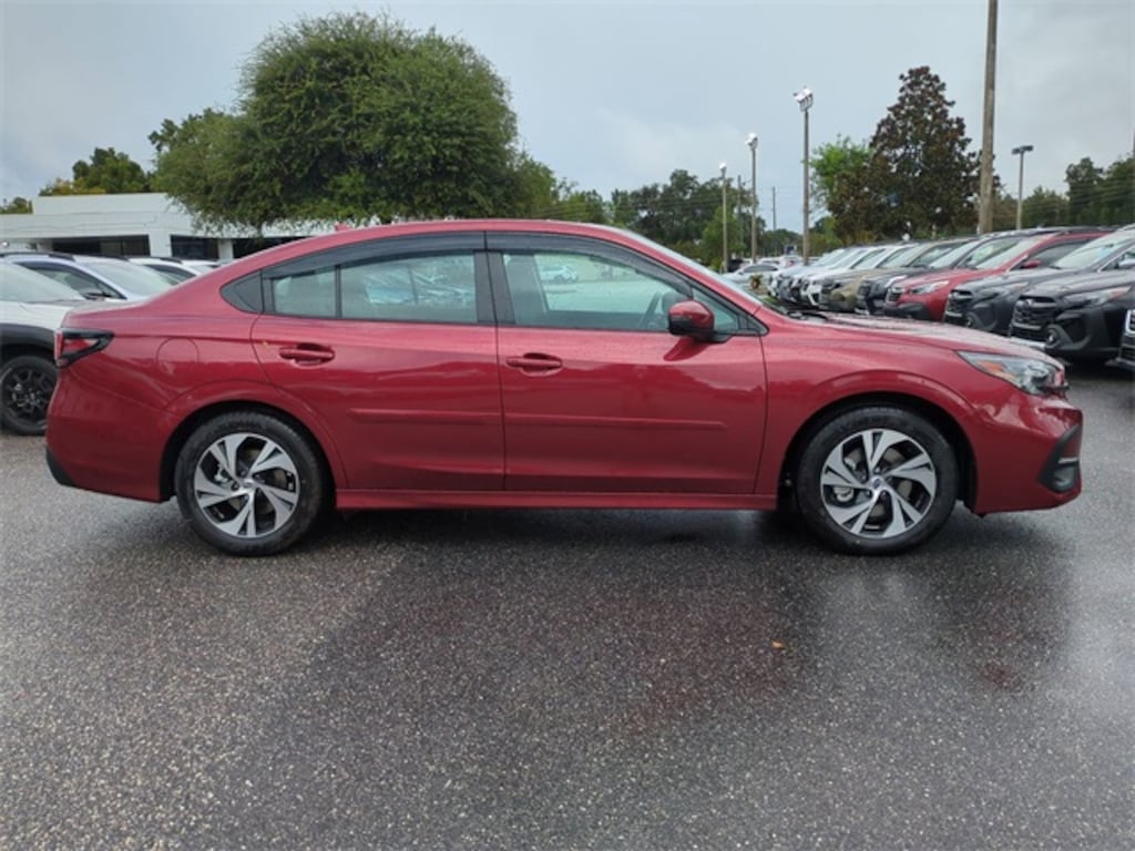 The price does not include tax, tag, license, an electronic filing fee of $449.00**, a private tag agency fee of $199.00**, and a predelivery service charge of $1199.00** **This charge represents costs and profit to the dealer for items such as inspecting, cleaning, and adjusting vehicles, as well as preparing documents related to the sale. * EPA-estimate metric: these are contingent on ideal conditions within a lab. Real-world situations such as carrying passengers or cargo, using climate control, driving style, and ambient temperatures can affect actual metrics. 27/35 City/Highway MPG Crimson Red Pearl 2025 Subaru Legacy Premium AWD Lineartronic CVT 2.5L 4-Cylinder DOHC 16V