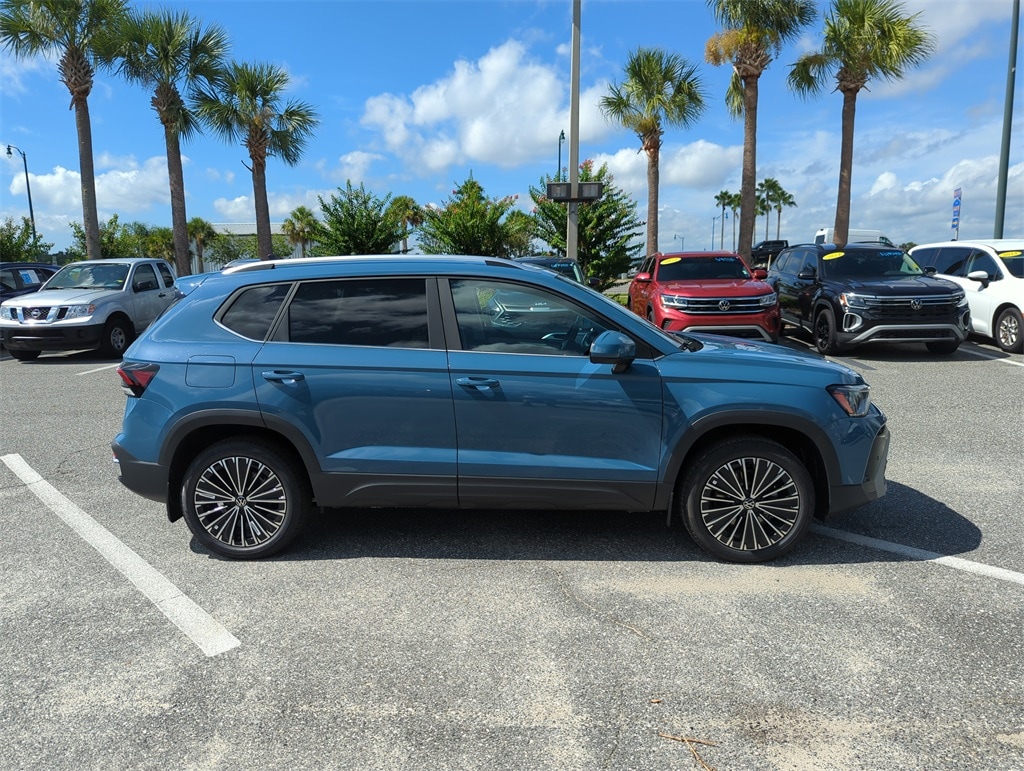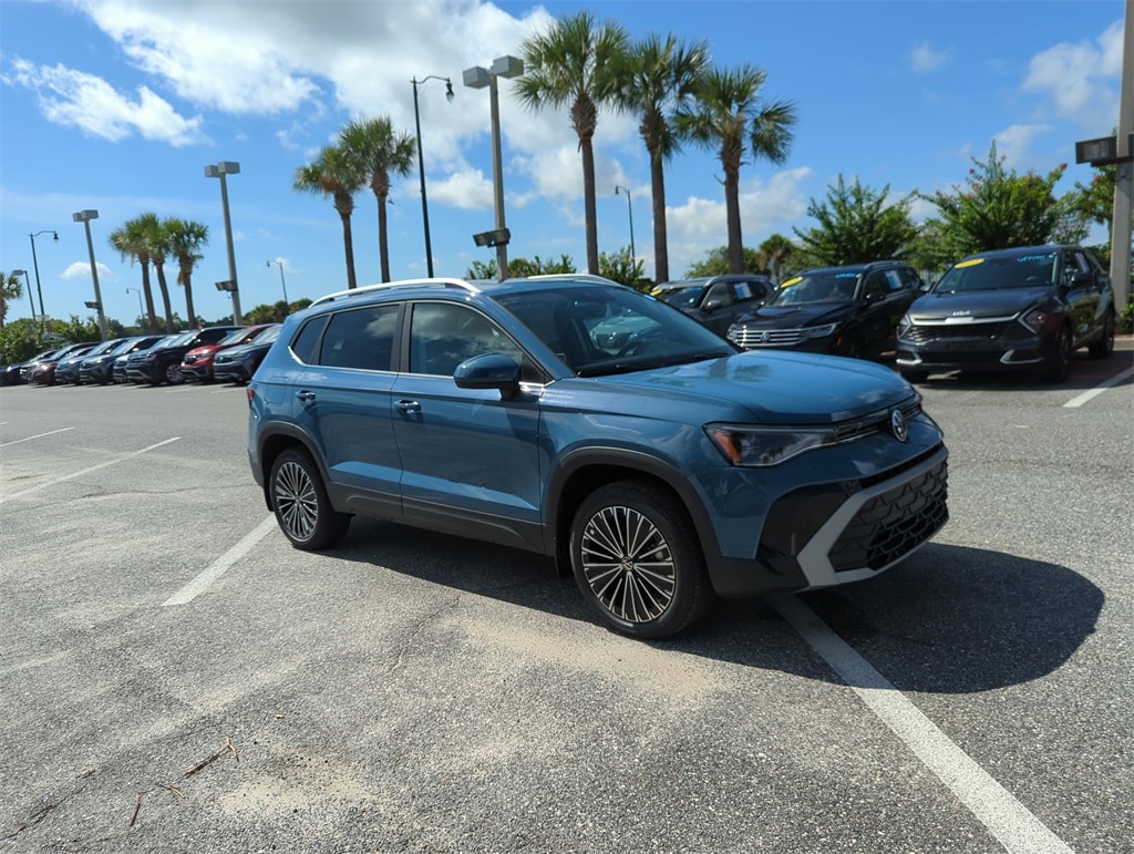 The price does not include tax, tag, license, an electronic filing fee of $449.00**, a private tag agency fee of $199.00**, and a predelivery service charge of $1199.00** **This charge represents costs and profit to the dealer for items such as inspecting, cleaning, and adjusting vehicles, as well as preparing documents related to the sale. * EPA-estimate metric: these are contingent on ideal conditions within a lab. Real-world situations such as carrying passengers or cargo, using climate control, driving style, and ambient temperatures can affect actual metrics. 28/36 City/Highway MPG Blue 2025 Volkswagen Taos 1.5T SE FWD 8-Speed Automatic with Tiptronic 1.5L I4 Turbocharged DOHC 16V LEV3-SULEV30 174hp