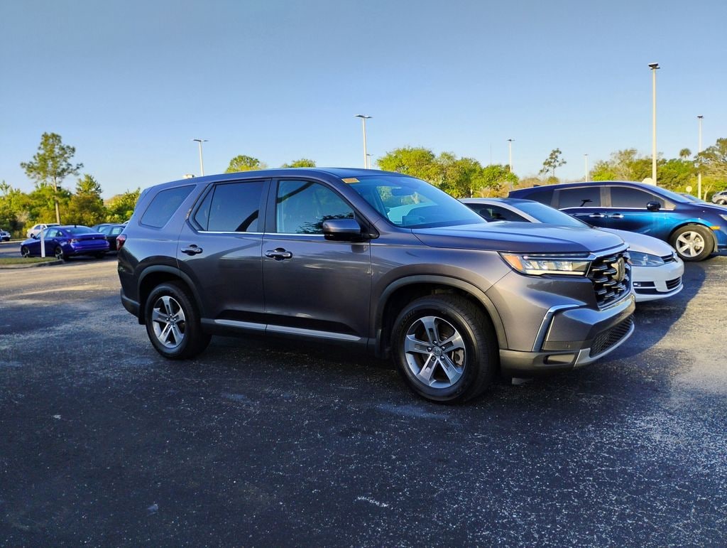 This vehicle comes equipped with 3rd row seats: split-bench, 4-Wheel Disc Brakes, 9 Speakers, ABS brakes, Adaptive Cruise Control: Adaptive Cruise Control (ACC) with Low-Speed Follow, Apple CarPlay/Android Auto, Auto High-beam Headlights, Auto-dimming Rear-View mirror, Blind Spot Information (BSI) System warning, Brake assist, Dual front impact airbags, Dual front side impact airbags, Electronic Stability Control, Four wheel independent suspension, Front dual zone A/C, Front fog lights, Fully automatic headlights, Garage door transmitter: HomeLink, Heated Front Bucket Seats, Lane departure: Lane Keeping Assist System (LKAS) active, Memory seat, Occupant sensing airbag, Power driver seat, Power Liftgate, Radio: 245-Watt Audio System, Reclining 3rd row seat, Security system, Speed-sensing steering, Steering wheel mounted audio controls, Traction control, Wheels: 18" Machined Face Pewter Gray, Air Conditioning, Alloy wheels, AM/FM radio: SiriusXM, Automatic temperature control, Axle Ratio: 4.167, Bumpers: body-color, Delay-off headlights, Driver door bin, Driver vanity mirror, Emergency communication system: HondaLink Assist, Front anti-roll bar, Front Bucket Seats, Front Center Armrest, Front reading lights, Heated door mirrors, Heated front seats, Illuminated entry, Knee airbag, Leather Seat Trim, Low tire pressure warning, Outside temperature display, Overhead airbag, Overhead console, Panic alarm, Passenger door bin, Passenger vanity mirror, Power door mirrors, Power passenger seat, Power steering, Power windows, Radio data system, Rear air conditioning, Rear anti-roll bar, Rear reading lights, Rear seat center armrest, Rear window defroster, Rear window wiper, Remote keyless entry, Speed control, Speed-Sensitive Wipers, Split folding rear seat, Spoiler, Tachometer, Telescoping steering wheel, Tilt steering wheel, Trip computer, Turn signal indicator mirrors, and Variably intermittent wipers . The price does not include tax, tag, license, an electronic filing fee of $449.00**, a private tag agency fee of $199.00**, and a predelivery service charge of $1199.00** **This charge represents costs and profit to the dealer for items such as inspecting, cleaning, and adjusting vehicles, as well as preparing documents related to the sale.* EPA-estimate metric: these are contingent on ideal conditions within a lab. Real-world situations such as carrying passengers or cargo, using climate control, driving style, and ambient temperatures