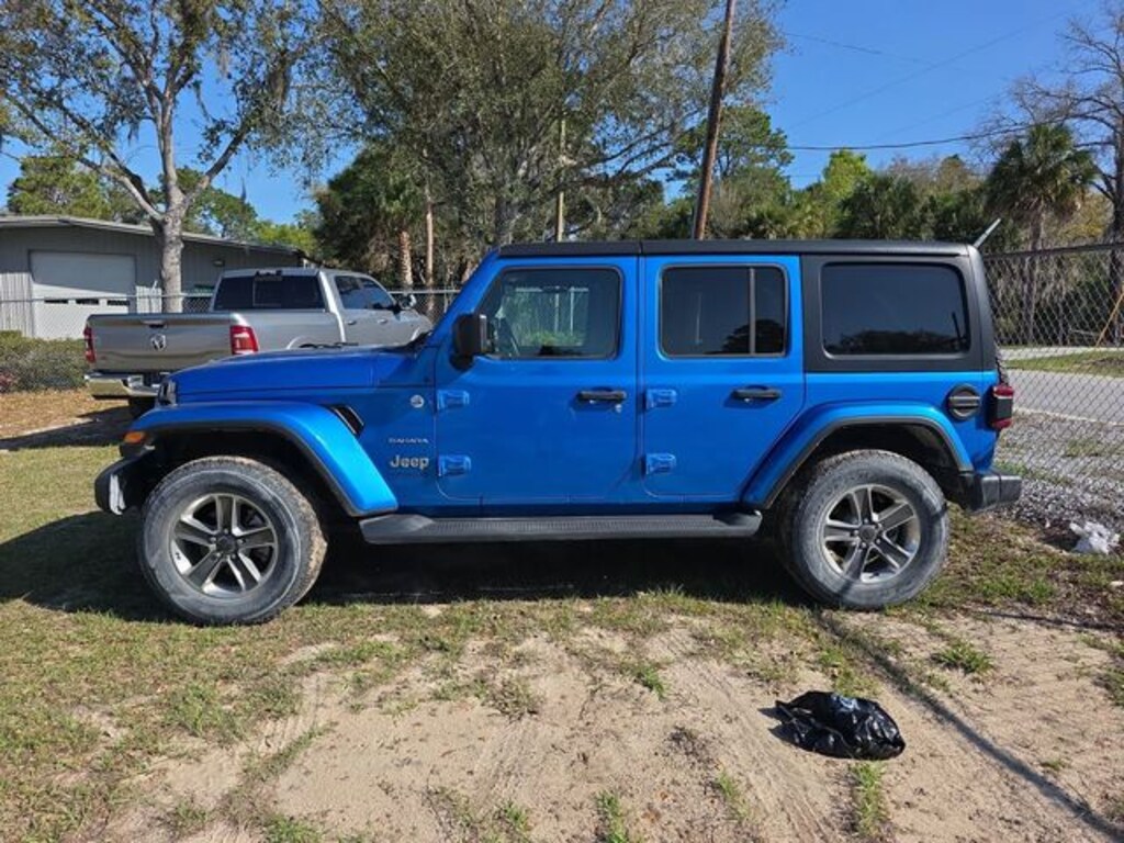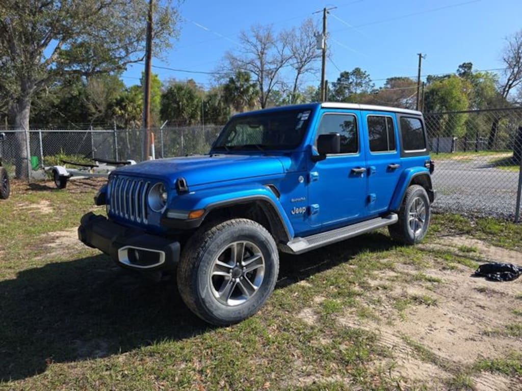The price does not include tax, tag, license, an electronic filing fee of $449.00**, a private tag agency fee of $199.00**, and a predelivery service charge of $1199.00** **This charge represents costs and profit to the dealer for items such as inspecting, cleaning, and adjusting vehicles, as well as preparing documents related to the sale. * EPA-estimate metric: these are contingent on ideal conditions within a lab. Real-world situations such as carrying passengers or cargo, using climate control, driving style, and ambient temperatures can affect actual metrics. 21/24 City/Highway MPG NAVIGATION SYSTEM, ALLOY WHEELS, BACKUP CAMERA, BLUETOOTH, CLIMATE PACKAGE, HEAT PACKAGE, LEATHER SEATS, POWER PACKAGE, REMOTE START, TOW PACKAGE. CARFAX One-Owner. Clean CARFAX. Recent Arrival! Odometer is 6098 miles below market average! Certified. Hydro Blue Pearl Coat 2022 Jeep Wrangler Unlimited Sahara 4WD 8-Speed Automatic 2.0L I4 DOHC